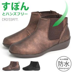 クロワッサン ブーツ ショート レディース 防水 ハンズフリー 履きやすい 疲れない 滑らない サイドゴア 4E 幅広 軽量 防滑 CR5201 雨 雪 秋 冬 シューズ 靴