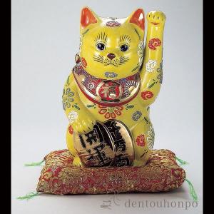 九谷焼 小判招猫 黄盛 8号 布団付 ( 木札名入れ有料 退職祝い 定年 置物 幸運 開運 開店祝い 風水 九谷焼 結婚 出産 内祝い 引き出物 )