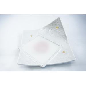 一珍点描ゴス吹雲銀プリーツ長角皿 有田焼 日本製 盛台 盛付皿 和食器