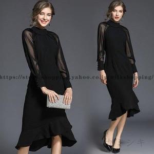 ドレス ベルスリーブスリットドレス パーティードレス 結婚式 同窓会 お呼ばれワンピース