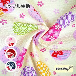 リップル 生地 和風 さくら と 金魚 縁起の良い文様 桜 きんぎょ 夏向き 涼し気げ リップル加工 布 綿100% 手芸 日本製 市松文様 青海波 流水文様 矢絣 桜文様