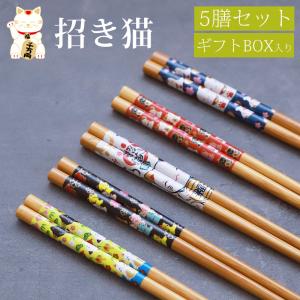50%OFF お箸セット おはし 5膳セット 竹製 22.5cm 招き猫 縁起物 大人 おしゃれ かわいい 来客 お土産 ギフト 贈り物 お箸 猫 送料無料