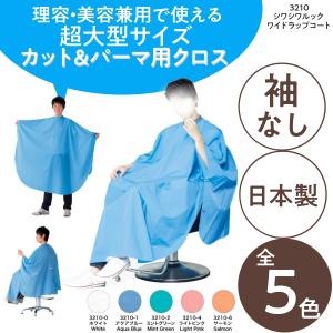 理容・美容兼用 カット&パーマクロス 日本製 ワコウ シワシワルック ワイドラップコート No.3210 袖なし 大型サイズ WAKO 散髪ケープ・セルフカット