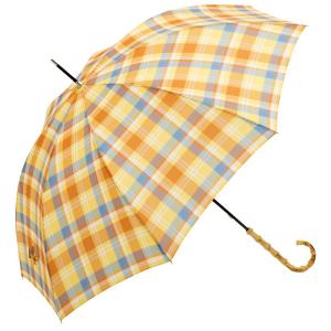 ビコーズ マドラスチェック イエロー 黄色 チェック柄 バンブー 竹 持ち手 傘 レディース 長傘 雨傘 日傘 UVカット 遮光 晴雨兼用 大きい 丈夫 手開きタイプ