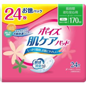 吸水ナプキン ポイズ 170cc 30cm お徳24枚 長時間・夜も安心用 (女性の軽い尿もれ用) 肌ケアパッド