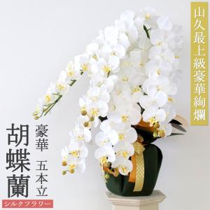 豪華 胡蝶蘭 造花 5本立 ホワイト 気品あふれるシルクフラワーの胡蝶蘭の鉢植 お祝い 新築祝い 開店祝い CT触媒 母の日 snb bpl