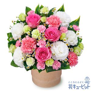 【誕生日フラワーギフト】花キューピット 女性 男性 彼氏彼女 夫妻 父母 ギフト プレゼント ピンクバラのポットアレンジメント