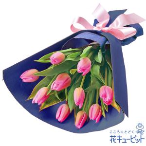 【誕生日フラワーギフト】花キューピット 女性 男性 彼氏彼女 夫妻 父母 ギフト プレゼント ピンクチューリップの花束