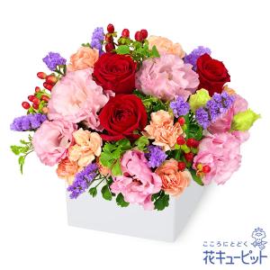 【誕生日フラワーギフト】花キューピット 女性 男性 彼氏彼女 夫妻 父母 ギフト プレゼント 赤バラとトルコキキョウのキューブアレンジメント