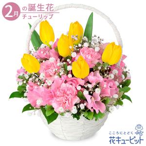 【2月の誕生花(チューリップ)】花キューピット 誕生日 お祝い 記念日 プレゼント 家族 友人 イエローチューリップのナチュラルバスケット