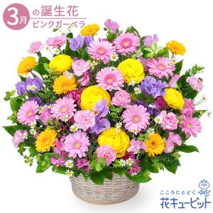【3月の誕生花(ピンクガーベラ)】花キューピット 誕生日 お祝い 記念日 プレゼント 春のガーデンアレンジメント