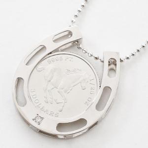 純プラチナ ホース コイン ペンダント 馬蹄枠 ダイヤモンド0.01ct SV925 チェーン付 爆買