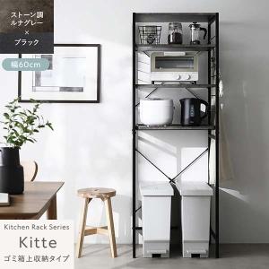Kitte レンジラック ゴミ箱上収納タイプ 幅60cm(ルナグレー×ブラック/BK/石目調)キッチンラック 可動棚 スライドレール デッドスペース有効活用 RASIK
