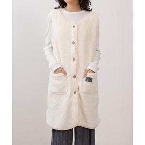 ルームウェア 部屋着 ふわふわモフモフノーカラーロングボタンベスト レディース