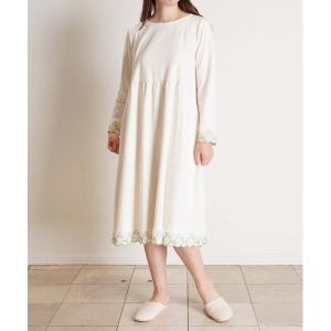 ルームウェア 部屋着 キッドブルー -ミモザレースインレイ -長袖ワンピース -KRBR516 -kidblue レディース