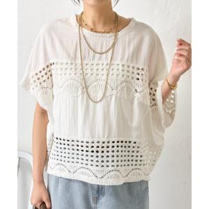 ブラウス シャツ カギ針ニット切替ブラウス レディース