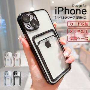 iPhone14/14Pro/14Plus/14ProMax ケース iPhone13/13Pro/13ProMax ケースカバー TPU スマホケース ソフト メッキ加工 レンズカバー カード収納 衝撃吸収