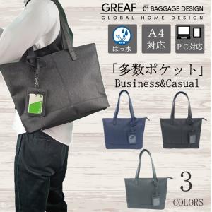 はっ水 撥水 カードポーチ付 電子機器収納ポケット 多数ポケット ビジネストート 男女兼用 普段使い GREAF