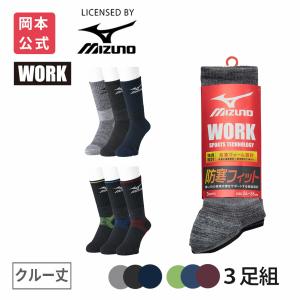 【靴下の岡本公式】【3足組】MIZUNO WORK 防寒フィット メンズ クルー丈 足首ウォーム 足底パイル レッグロゴ 足首引揃 ミズノ