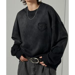 トレーナー スウェット 「Alfred Alex」スプレー加工グラデーションエンブレムロゴオーバーサイズスウェット メンズ レディース