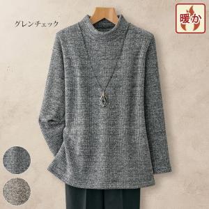 プルオーバー トップス レディース おしゃれ 秋冬 ミセス シニア ファッション 40代 50代 60代 70代 80代 微起毛プリントロングプルオーバー