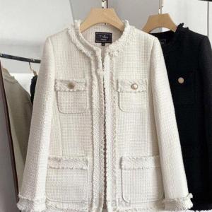 ジャケットレディースツイードツイードジャケットノーカーラーフリンジエレガントレトロベージュピンク韓国韓国ファッション