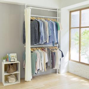カーテン付き 突っ張り ハンガーラック 幅90-133 奥行36 高さ190-260cmWJ-350WHCA 2段掛け つっぱり棒 突っ張りハンガーラック クローゼットハンガーラック