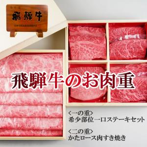 御歳暮 2025 ステーキ ギフト 肉 A5等級 飛騨牛のお肉重 2段 希少部位 一口ステーキ とも三角 ミスジ イチボ ランプ かたロース すき焼き お歳暮 贅沢 感謝 お重