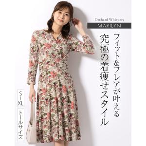 ワンピース マリリン ツイスト オーチャードウィスパー opp6-050003 きれいめ 30代 40代 50代 着やせ 上品 大きいサイズ トールサイズあり 膝丈 七分袖 春秋
