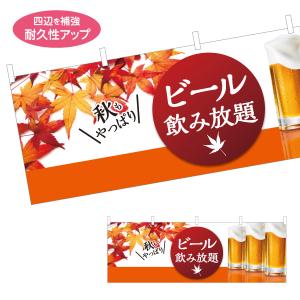 横断幕 ビール飲み放題 秋 BEER 屋内 屋外 テトロンポンジ ターポリン 選べる素材とサイズ Y-4126-8