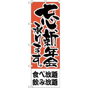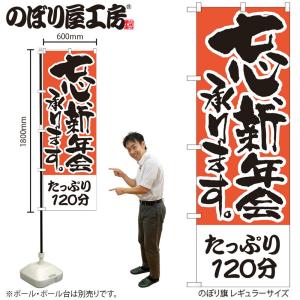 のぼり のぼり旗 H-423 忘新年会承ります たっぷり120分 W60×H180cm 1枚 三方三巻 商売繁盛 (受注生産品/メール便は3枚まで)