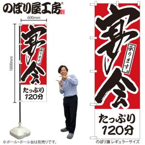 のぼり のぼり旗 H-411 宴会 たっぷり120分 W60×H180cm 1枚 三方三巻 販促 商売繁盛(受注生産品/メール便は3枚まで)