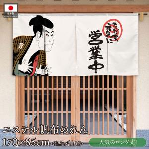 のれん 横長 営業中 写楽 170cm幅 85cm丈 4つ割 エステル帆布 丈夫 厚手 暖簾 業務用 店舗用 飲食店(受注生産 48717)