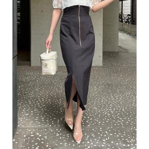 マルチサイズ スカート 「骨格ウェーブ」フロントZIPパネル切替ハイウエストタイトスカート