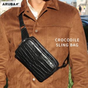 クロコダイル 本革 ボディバッグ ショルダーバッグ ウエストバッグ型 鞄 バッグ 革 ワニ革 鰐革 ブラック 黒 コンパクト メンズ レディース アルバ bb321b22