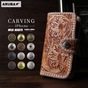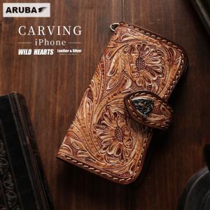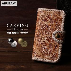 ワイルドハーツ スマホケース 手帳型 iPhone カービング 携帯 アイフォン ケース 16 15 14 pro max plus 本革 レザー ヌメ革 牛革 アルバ WILD HEARTS ip3516d6