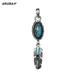 ペンダントトップ シルバー925 フェザー ターコイズ トルコ石 天然石 ストーン ペンダント トップ ネックレス レディース メンズ アルバ ptop32 a5