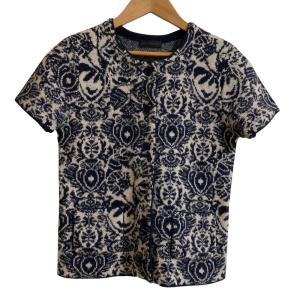 美品 ANTEPRIMA アンテプリマ ショートスリーブ ジャガード ニット ジャケット カーディガン サイズ40 ホワイト ネイビー レディース 古着 中古