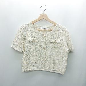 ◇ DHOLIC ツイード柄風 半袖 ジャケット サイズ表記なし ベージュ系 レディース E