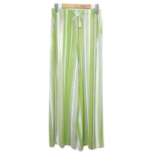 ドゥクラッセ DoCLASSE UVスラブ セミワイドパンツ イージーパンツ ストライプ ウエストゴム L グリーン系 /X レディース