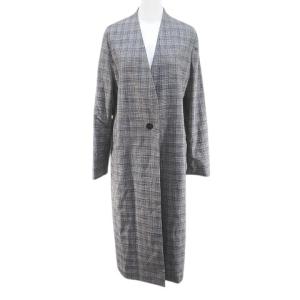ドゥクラッセ DoCLASSE CARREMAN チェック柄 ノーカラーコート 薄手 ロング丈 11 灰系 グレー ポケット 裏地 レディース