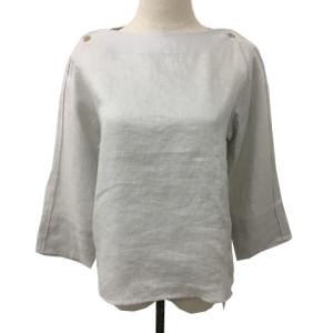 ドゥクラッセ DoCLASSE ブラウス シャツ プルオーバー ボートネック 無地 リネン スリット 七分袖 7 グレー ベージュ レディース