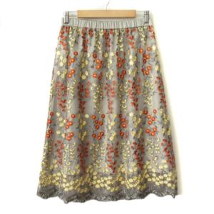 ドゥクラッセ DoCLASSE スカート 刺繍 花柄 スカラップ チュール 11 グレー レディース