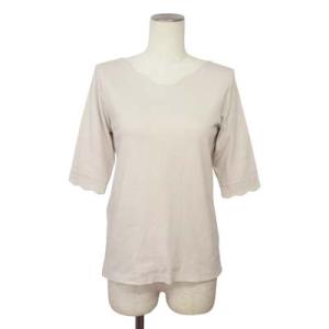 ドゥクラッセ DoCLASSE カットソー スカラップ 五分袖 M ベージュ レディース