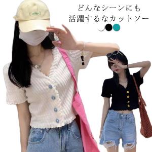Tシャツ トップス 半袖 tシャツ レディース カットソー 前開き tシャツ 無地 爽やか 夏Tシャツ ゆったり カジュアル きれいめ トレンド 大き