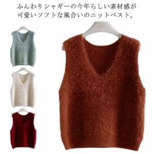 ニットベスト レディース 秋冬 シャギーニット ベスト シャギーベスト ニット Vネック レイヤード シャギーニットベスト ジレ トレンド トップス