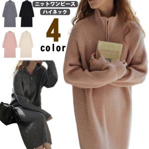 秋冬 ロング 韓国ファッション レディース カジュアル 大人可愛い Iライン 体系カバー ハイネック おしゃれ 春 ニットワンピース ワンピース ニッ