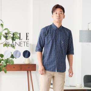 シャツ メンズ 七分袖 ボタンダウン ワイドカラー カジュアルシャツ ELLE PLANETE エルプラネット 父の日 30代 40代 50代 60代 70代
