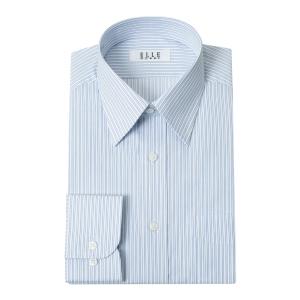 ELLE HOMME ワイシャツ メンズ 長袖 形態安定加工 ゆったり ブルー 青 ストライプ レギュラーカラー【爆買】