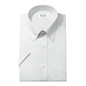 ELLE HOMME 半袖 ワイシャツ メンズ 夏 形態安定 涼感素材 グレー ストライプ ボタンダウン |綿 ポリエステル テンセル クールビズ【爆買】